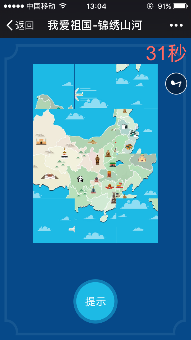点击每个拼图方块,可任意移动。依据提示图,在最短的时间内完成拼图。