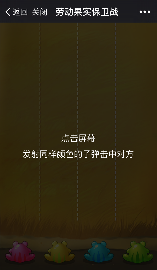 当害虫的颜色与同列的青蛙变动颜色一致时,点击青蛙可以消灭害虫。消灭的越多,得分越高。
