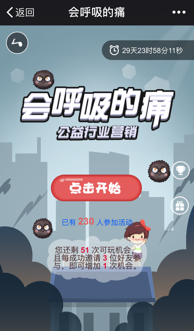 雾霾是会呼吸的痛,它围绕在空气中的所有角落~~快来帮妹纸穿越雾霾,拥抱蓝天吧!