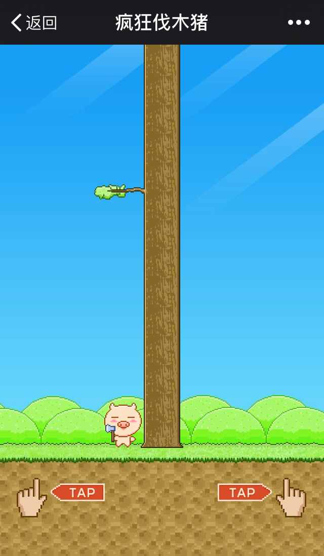 点击屏幕左右的“TAP”按钮,变换小猪的左右方向,进行伐木。伐木时,注意躲避树枝。