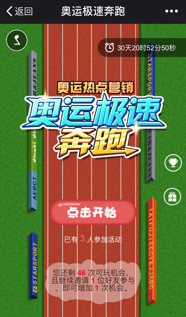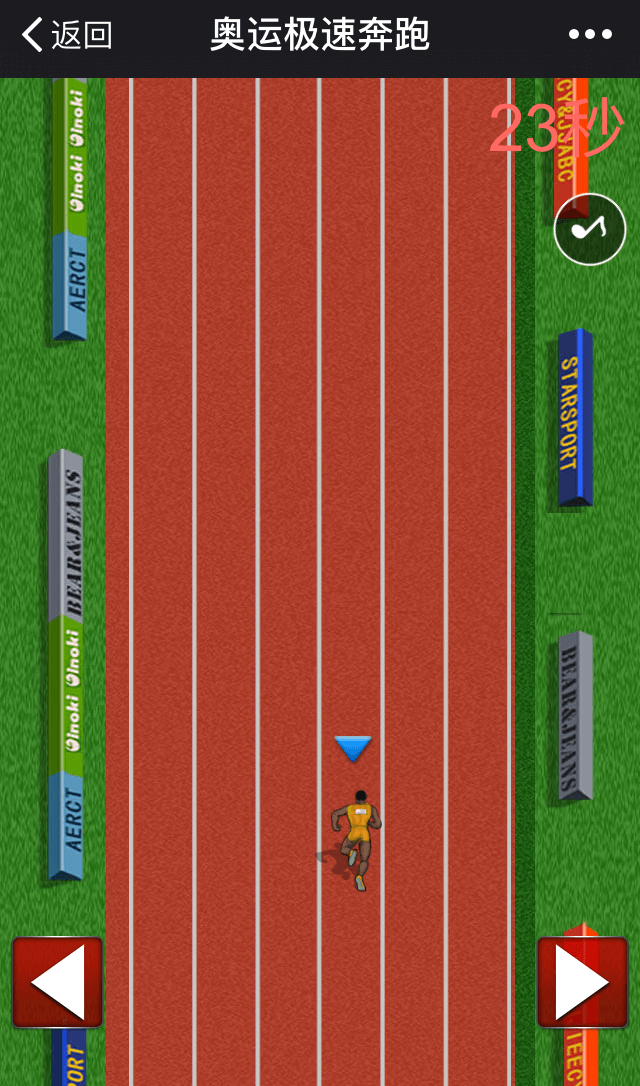 点击左右按钮,来回切换。切换的速度越快,运动员跑得越快。
