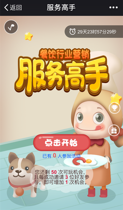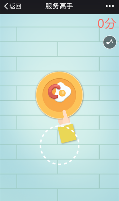 点击屏幕,移动餐盘接住跳跃的荷包蛋,可得一分。接住次数越多,得分越高。
