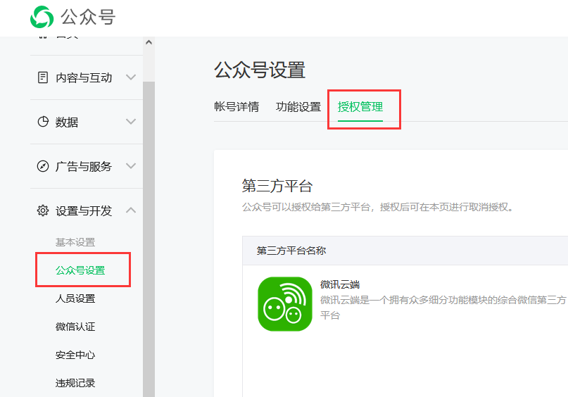 上面提到的是在微讯平台后台的重新绑定公众号的路径,那接下来微信官方的公众平台上怎么去管理这个授权呢?