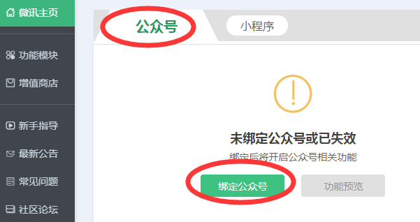 一、首先检查公众号是否已经一键授权绑定, 具体绑定入口如下图: