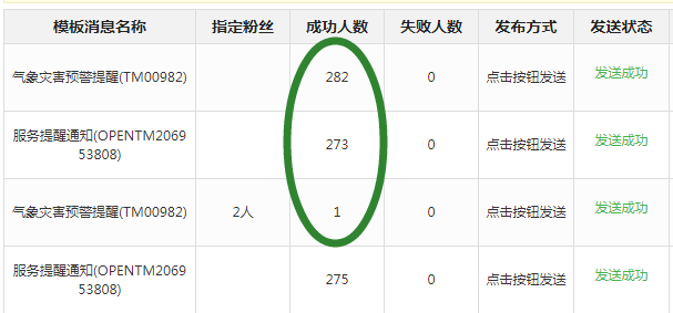 上图中所展示的就是模板消息群发之后,在发送记录中会显示的成功人数,