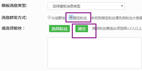 在消息群发方式中,选择指定粉丝这个选项,然后在请选择粉丝这一项中,有一个清空按钮,您只需要点击这个清空按钮之后,那么之前你所指定过的粉丝缓存就会被立刻清空了,当您在下一次群发模板消息的时候,则成功人数就不会比对之前被指定过的粉丝人数缓存了,所以自然系统显示的成功人数也就符合实际的指定者人数了。