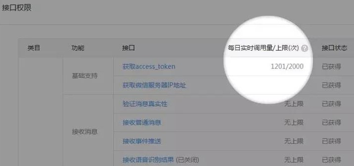这就是微信官方对于接口调用的限制说明了。