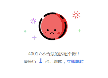 40017 不合法的按钮个数,那相信大家直接通过这个字面意思也就能够猜出个大概意思了,就是自定义菜单添加时,所添加的菜单数量不对了,没有达到微信所规定的菜单个数而已。