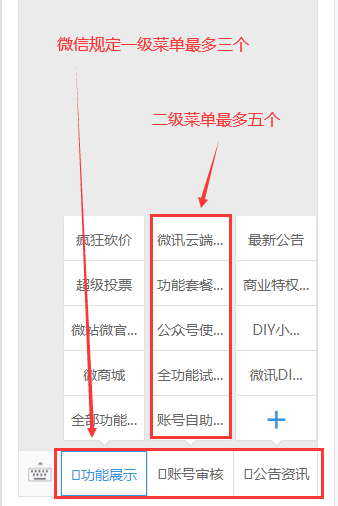 2、菜单数量不得大于微信规定的个数