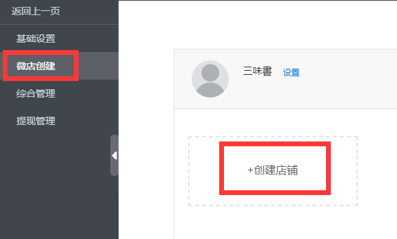 二、创建店铺,左侧导航选择微店创建,然后在点击创建店铺按钮,根据系统弹出的页面完善店基础信息保存即可。系统允许最多创建三家店铺,多家店辅创建后可以关闭店铺,店铺一旦创建后不允许删除。(下图)