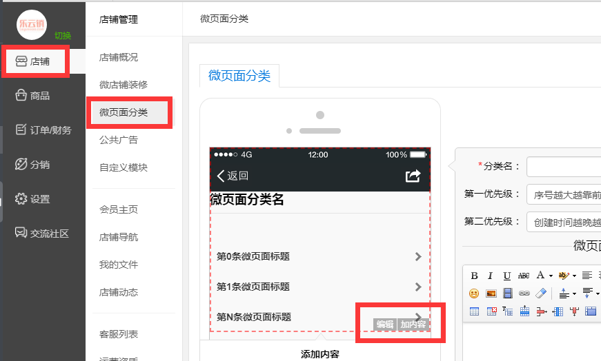 三、店铺装修、页面分类、底部导航等设置管理