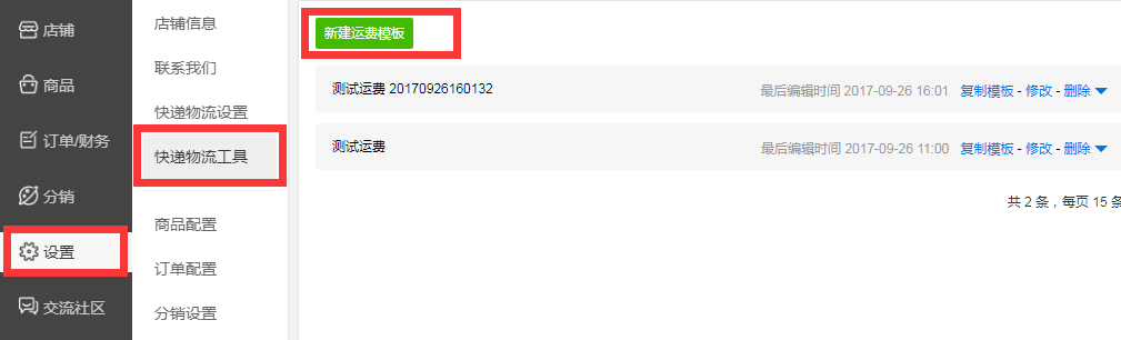 2、在选择快递物流工具按钮后,再点击新建运费模板,可以对商品运费模板进行创建,允许创建多个运费模板。(下图)