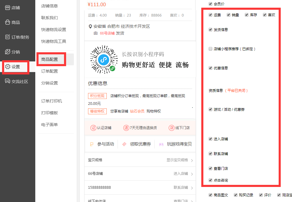 六、商城快递、商品详情、订单配置、分佣比例,订单打印等管理设置