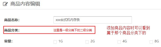 13、在添加商品详细信息时,就可以看到当前创建的商品是属于那一个分类下的商品了,也方便管理员快速了解查看,以免在编辑商品时混淆要添加的分类了。如果有多个商品需要添加,那自然按这几个步骤重复去添加即可了。如下图: