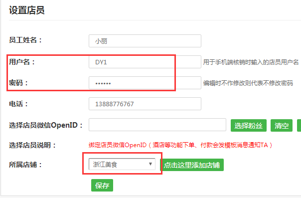 添加店员时按页面上的要求填写就可以了,都是非常简单的。(下图)