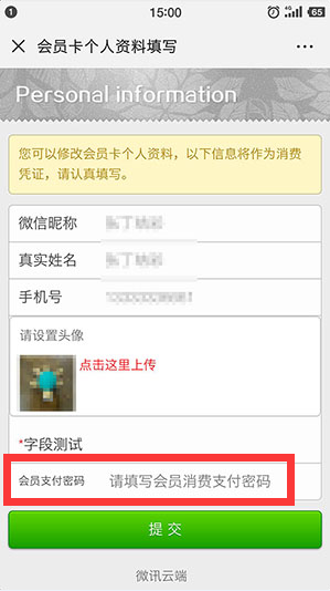 在会员卡个人资料设置页面,找到页面底部的“会员支付密码”字段,直接输入新的会员支付密码即可完成密码重置工作了,最后别忘了点击提交按钮哦。(下图)