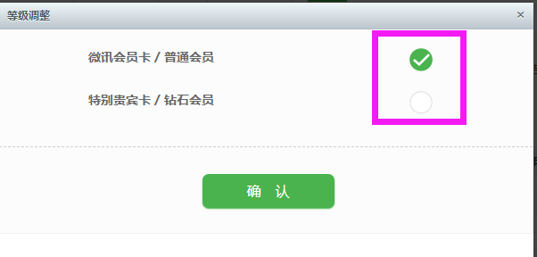 在等级调整页面,直接勾选需要对应的会员卡就可以了,最后点击确认保存成功就可以了。如下图所示: