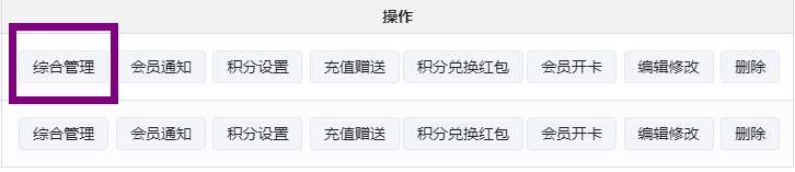 4、我们再回到操作坐栏中,点击“综合管理”进入到修改会员积分的页面里去。如下图所示:
