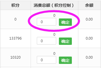1、在消费总额(积分控制)里通过输入金额(负数可填)来调整会员消费,积分则会根据积分设置中的消费积分比例自动变化。
