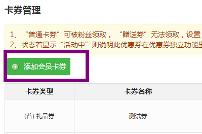 开始进入正题,当然我们在讲怎么创建会员卡卡券的前提基础是,您首先已要在会员卡功能里添加过了会员卡了。这个相信大家通过查看《