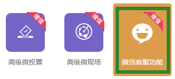 当公众平台开通微信客服成功后,就需要到软盈平台上来开启微信客服功能了,在功能模块里搜索“微信客服功能”就可以找到并进入。(下图)