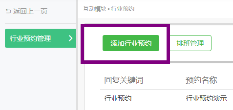 2、进入到功能后,点击“添加行业预约”按钮,便可以创建预约活动了,需要注意的是,平台上是允许同时创建多个预约活动。(下图)