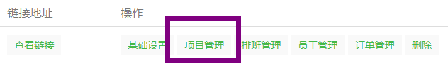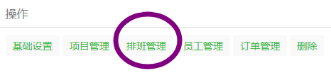 7、当服务项目添加之后,可以到预约列表的操作栏目中点击“排班管理”,进入编辑具体的排班时间段。(下图)