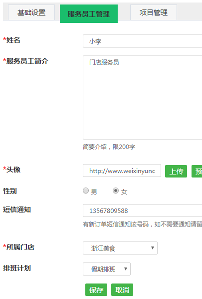 四是可预约门店/员工,这个只有被勾选了门店及对应的员工后,当前这个服务项目在手机端才可以被对应的门店内显示以及指定服务人员下单预约。