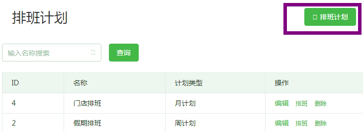 8、当进入排班管理之后,点击右上角“排班计划”,就可以编辑具体的上班时间段以及是否休息,这里允许同时添加多个不同的排班计划,商家可以根据自己的上下班自行调整。(下图)