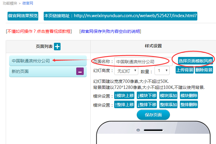 在样式设置里,可以看到页面名称,这个就可以修改每个页面的名称,以便方便管理不同的页面,再点击“选择页面模板风格”就可以对当前的页面选择模板了。(下图)