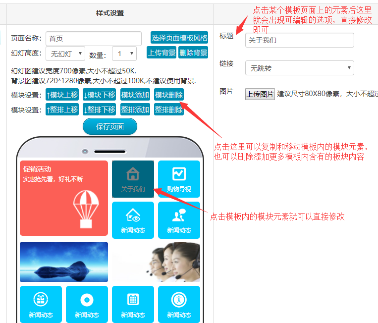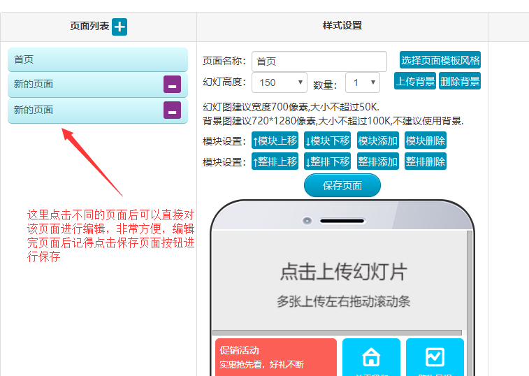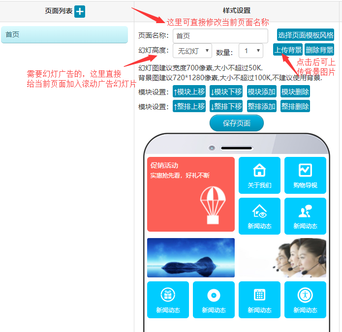 页面上的编辑按钮还是比较清晰的,可以给页面添加背景图片,或者给当前页面头部插入幻灯滚动广告图片