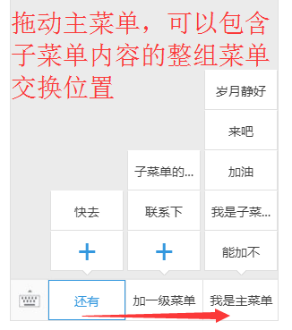 八,如果需要调整某个菜单按钮的位置,可以选中需要更换位置的菜单并拖动到需要互换位置的目标菜单,便可以自动互动两个菜单的位置。(下2图)