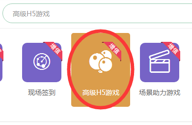 首先进入到软盈功能模块,直接在后台搜索“高级H5游戏”功能,便可快速定位到此功能。(下图)