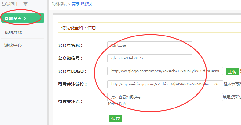 首先把举行游戏的公众号基本信息都填写完整,需要注意的是引导关注语不能过分强调用户关注参与,原因大家都了解,因为微信官方对强制关注的公众号有处罚措施。(下图)