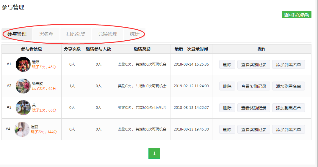 当活动正式发布后,便可在我的游戏中查看当前活动的参与情况、比如奖品的兑换、奖品的发放等,也可以查看到活动链接地址等。(下二图)