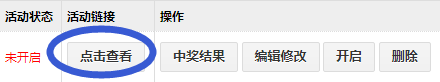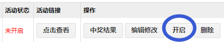 4、九宫格活动添加完成之后,可以在活动列表中查看活动状态,在操作中点开启后活动就算正式开始了。(下图)