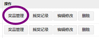 4、当活动内容编辑完成之后,退回到活动列表里,可以看到奖品管理,点击“奖品管理”按钮进入就可以加上您需要的奖品了。(下图)