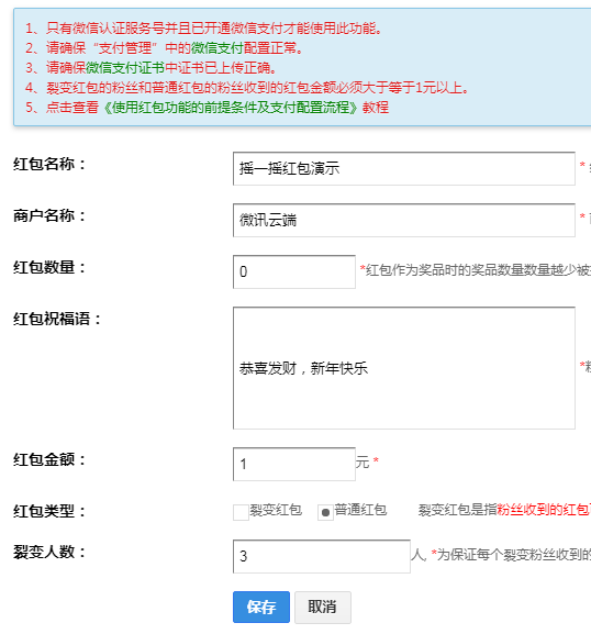 1、发放微信红包奖品的,需要绑定认证服务号同时达到使用微信红包接口要求。