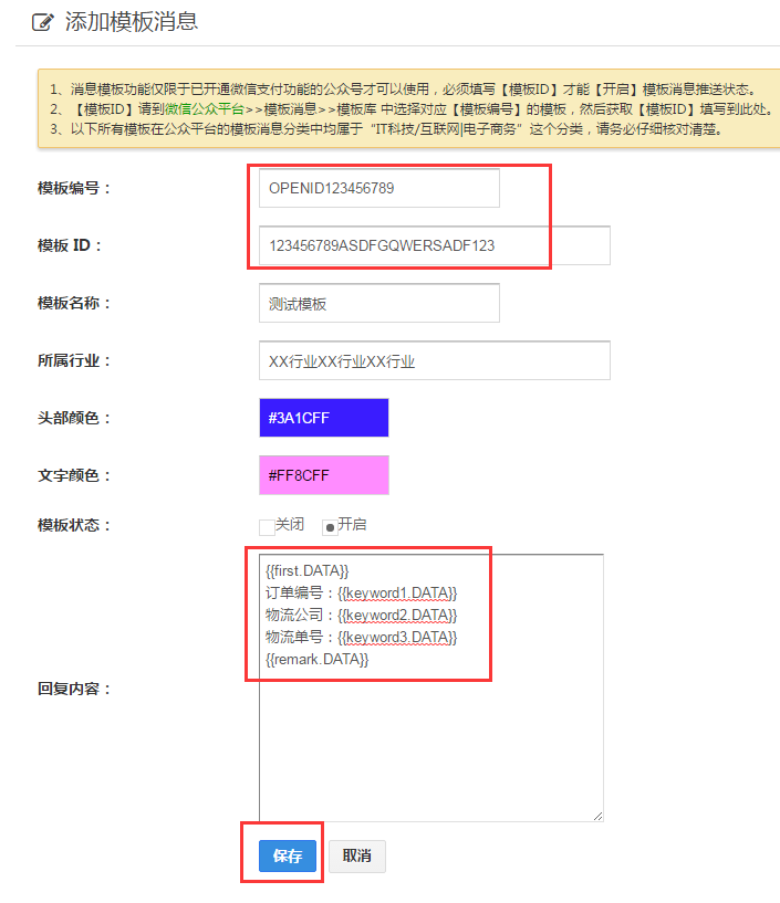 2、微信模板消息的格式无法自定义修改,以微信公众平台模板库内的模板格式为准。