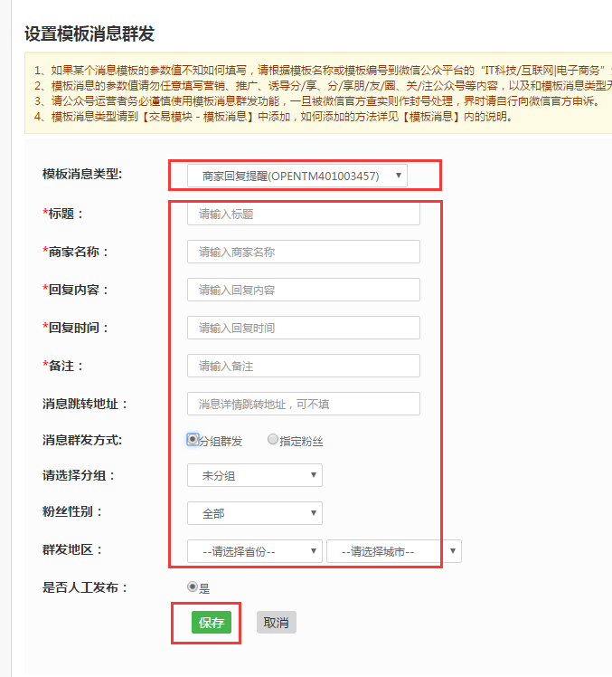 4、运营者务必谨慎使用模板消息群发功能,一旦被微信官方查实违规使用则作封号处理,请自行向微信官方申诉。