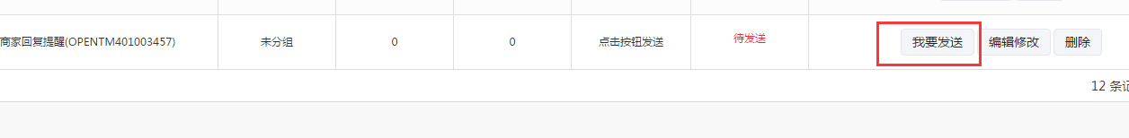 3、当以上所有内容都设置无误后,直接在已创建的模板消息群发中直接点击“我要发送”按钮就可以将此条模板消息群发出去了。