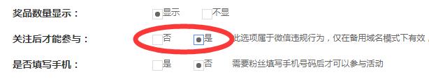 一、若功能中可以设置是否关注后参与选项,选择“是”选项。下图所示