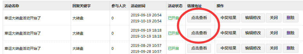 大转盘、微秒杀、九宫格等不同的活动或在相同功能里创建了多个活动,复制这些活动的链接地址。(下2图)