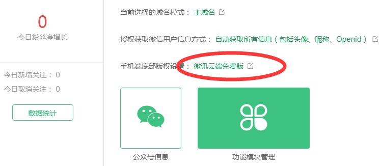 那怎么来获取修改这个版权文字信息呢?可以登录微讯云平台后,在管理面板中找到手机端底部版权设置这一项。(下图)