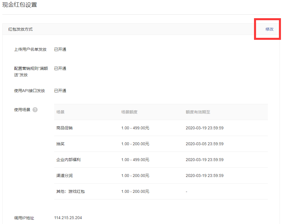 年底了,红包功能使用也渐渐的多起来了,小编遇到偶尔有商家在使用一些红包功能时,比如粉丝红包、合体红包,或者是抽奖红包时,在功能后台发放红包时,系统会给出如下提示“IP地址非你在商户平台设置的可用IP地址”,当遇到这个问题时,主要原因是在微信的商户平台里没有配置过第三方红包功能的对接平台IP。