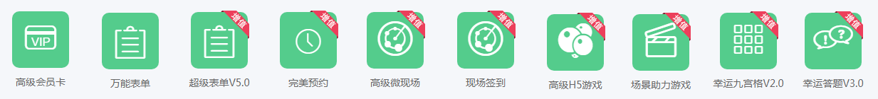 会员卡:适用于微信端领取的线上会员卡、集成会员充值、消费、积分兑换红包、会员等级和折扣,以及优惠卡券、代金卡券、礼品卡券等会员综合管理功能。