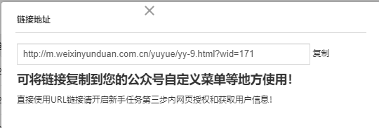 以刚才我们添加的预约活动为例,只要是软盈后台创建的功能或者活动,在你创建后都会给出这个活动的独立URL连接地址,连接地址就是网址(每个网页都有特定的网络地址简称网址),我们试着找到刚才我们创建的微预约的URL连接地址,如图: