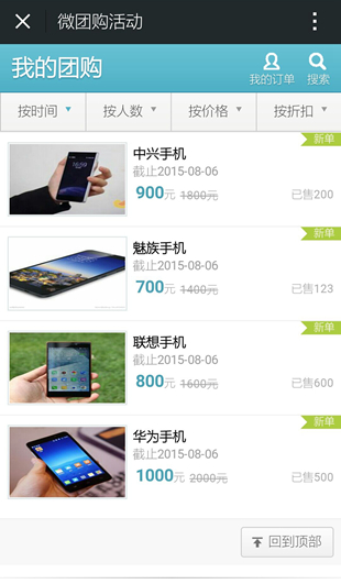 高级团购可以在公众号内实现多商品的团购活动,只要公众号开通微信支付后,粉丝可以在线完成团购商品的选择、下单、支付等整个在线团购流程。高级团购功能还支持实物商品与虚拟商品的团购交易,虚拟商品交易可免去物流发货环节,直接手机端可推送虚拟商品的卡号及卡密,同时还支持商家在手机端或功能后台直接通过输入团购券密码来直接核销当前订单的处理状态。