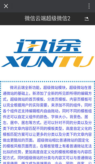 超级微站相比普通微站的固定化的模板风格页面而言,在模板管理上有着普通微站无法比拟的优势,更加高度自定义化的模板和模板及内容匹配方式,同时超级微站的分类与内容又可以与普通微站共享使用,自定义的首页、列表页、内容页模板与普通微站近三百套固定化模板结合使用,使之成为品牌企业、团队组织、商家、及行政服务机构们更受欢迎的微信网站功能之一。