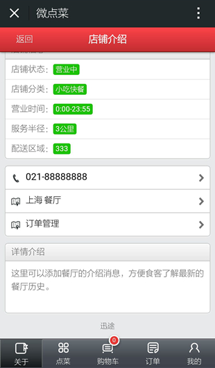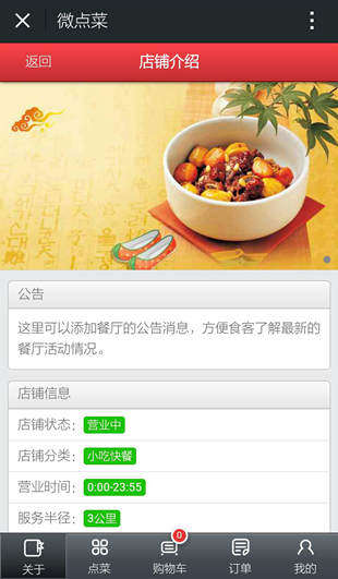 微点菜可以通过公众号实现餐厅现场点菜功能,餐厅不需要使用传统纸质菜谱,粉丝可以直接通过公众号内实现现场点菜流程。
